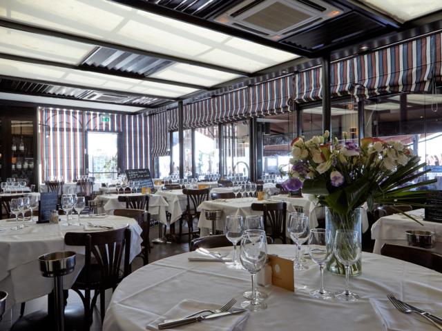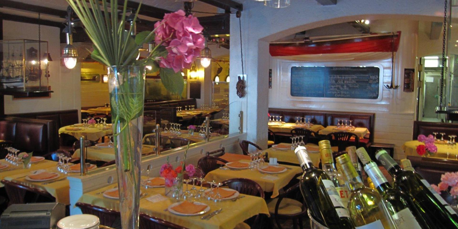 Ein Glas Bordeaux-Weiß- oder Rotwein und ein Kaffee inbegriffen.