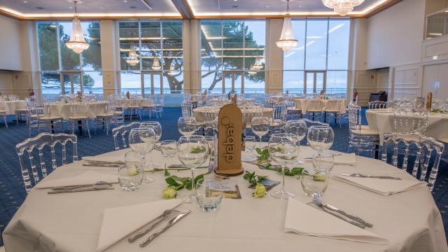 the Salle des Ambassadeurs offers 500m² of fully modular space. Bathed in light and with access to balconies overlooking the Bay, the room is ideal for gala dinners.